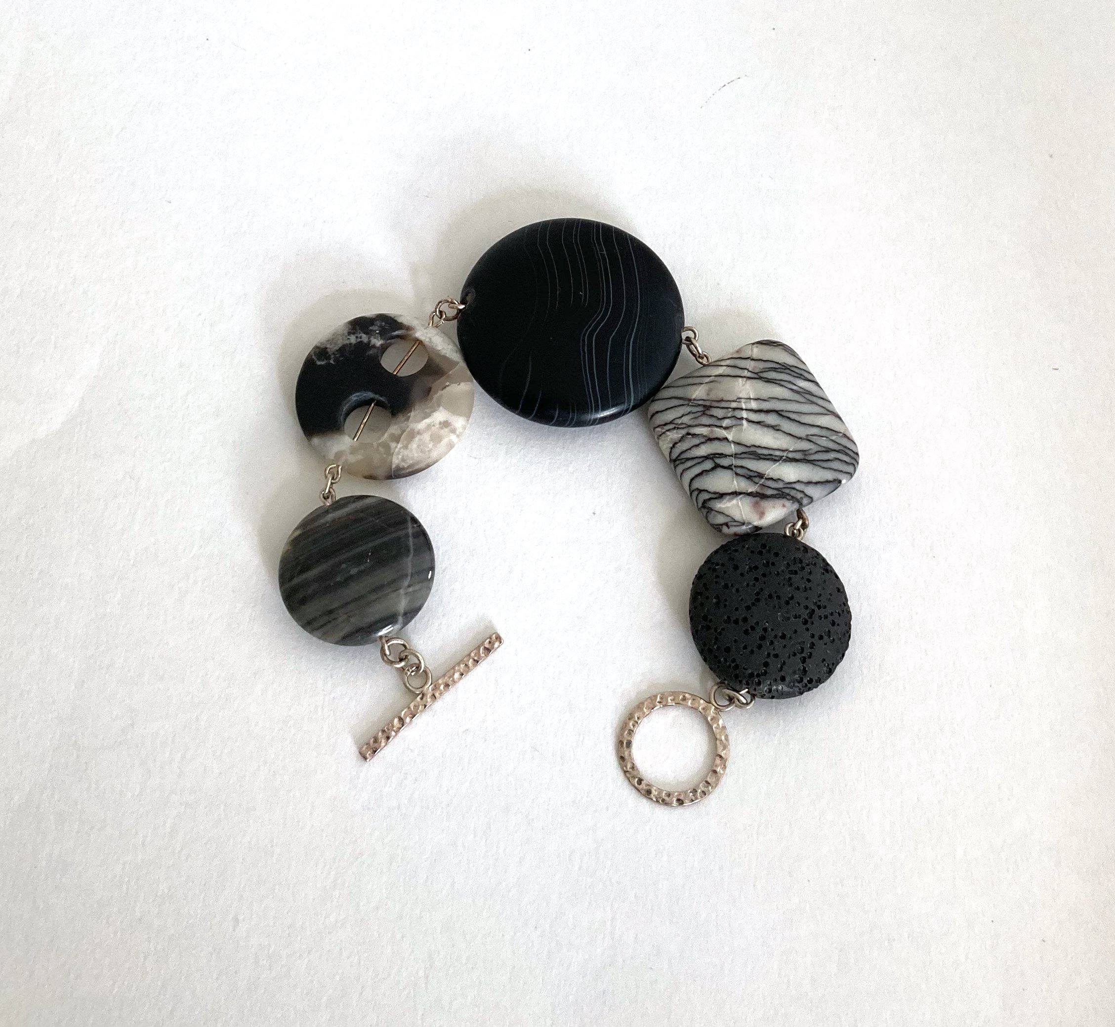 Black stripe agate, black line jasper, lava stone, stripe agate, hammered recycled toggle clasp