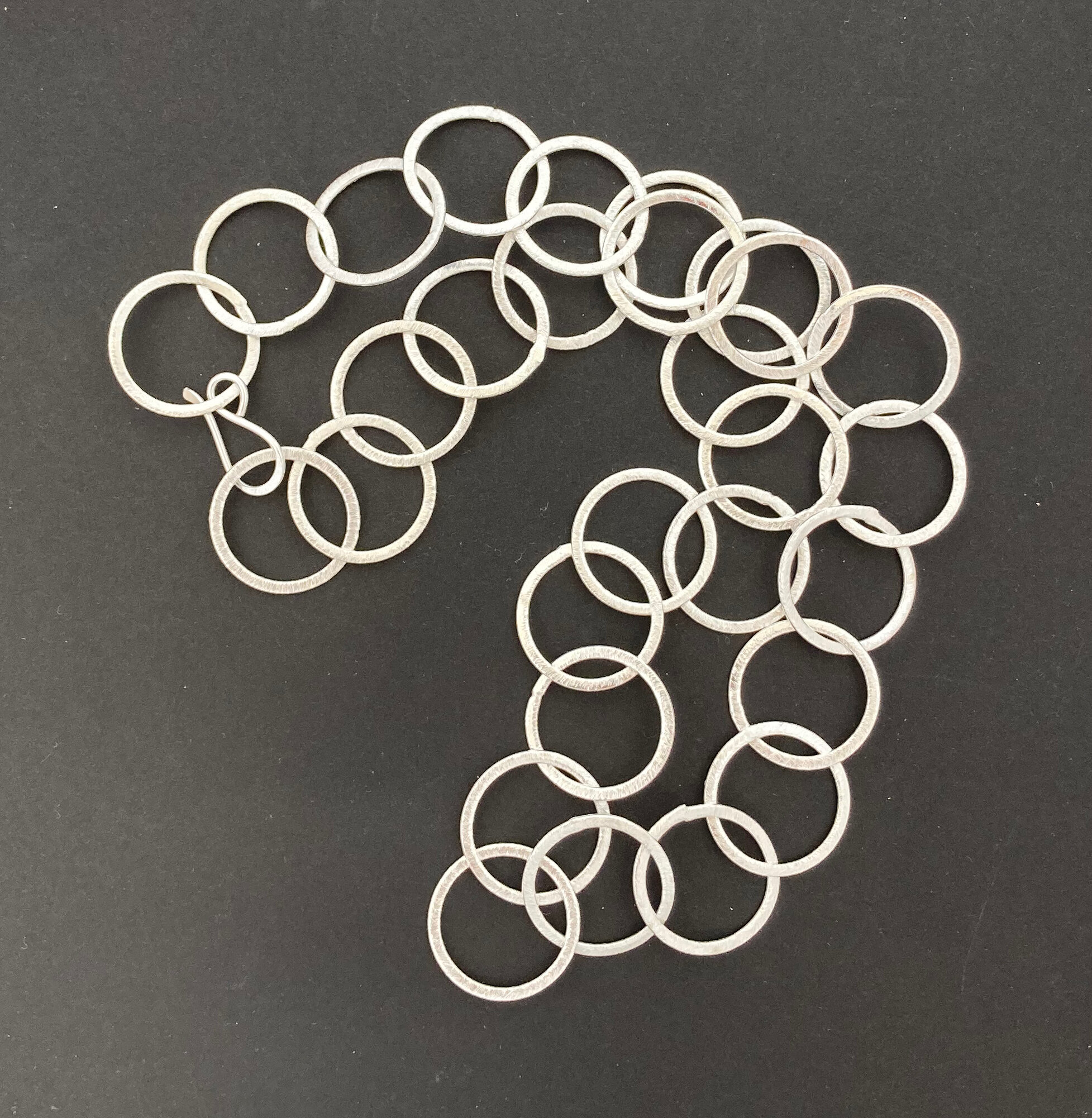 Brush silver metal 25mm circles necklace