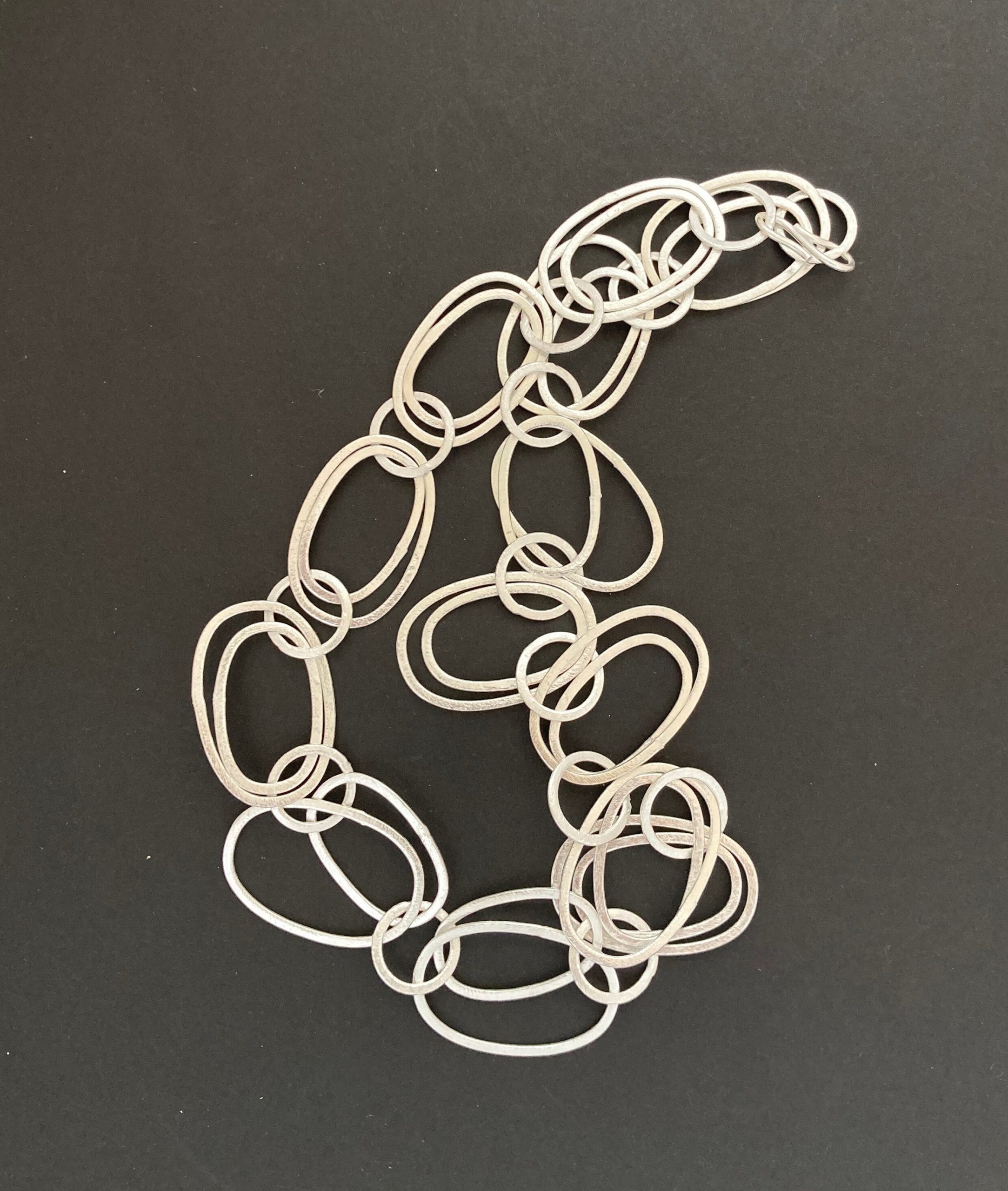 Brush silver metal multi oval necklace