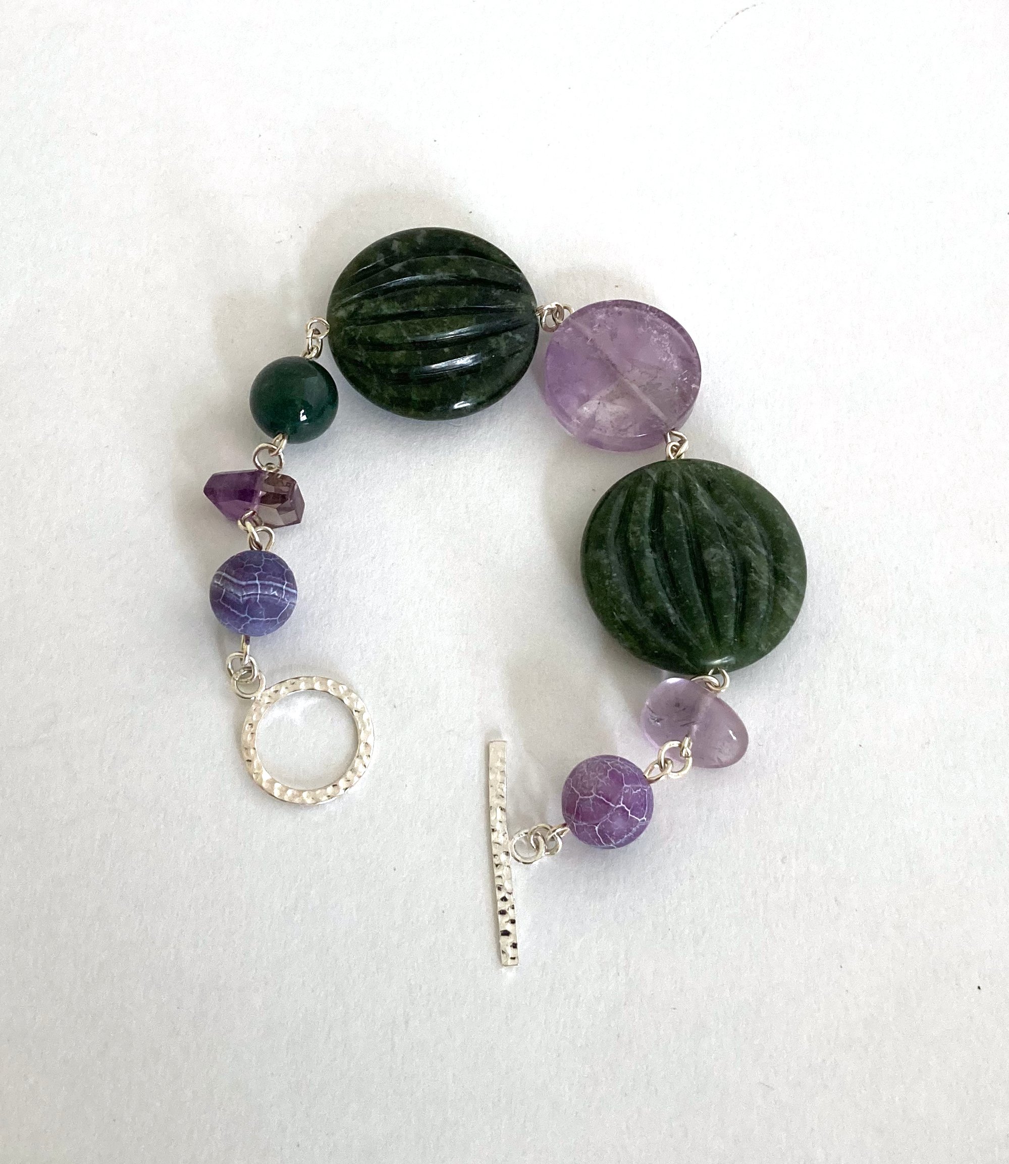Nephrite jade, amethyst, hammered recycled silver toggle clasp