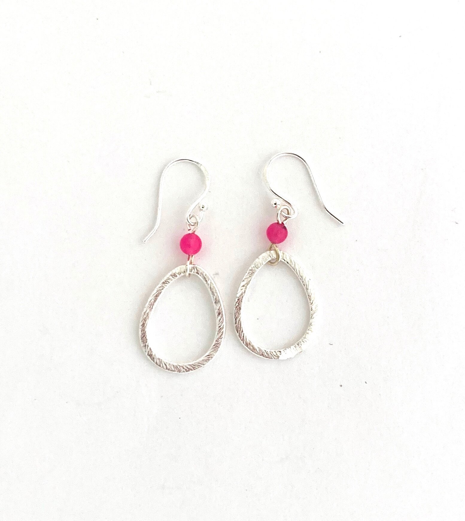 Pink agate, brush silver metal, hallmarked sterling earrings